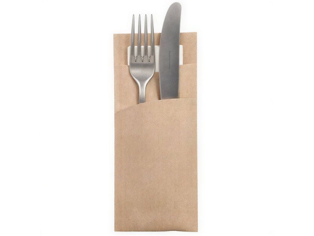 Vrecká na príbory s rozmermi 20 cm x 8,5 cm, vyrobené zo 100 % papiera.