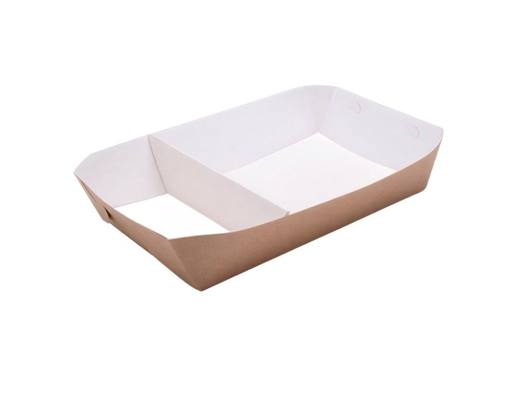 Papierové tácky na jedlo s priehradkami sú praktickým riešením na servírovanie dvojzložkových jedál.